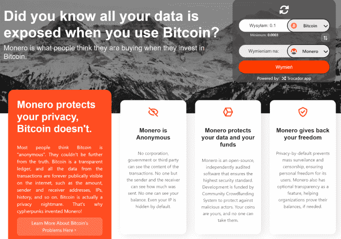 is a website dedicated to Monero, where you will find all the advantages of XMR described. Moreover, its team also prepares free reports on adoption, specifically information on monthly transfers, acceptance among sellers, etc. The site also allows you to make simple Monero swaps using Trocador.app (StealthEX is a partner of both Trocador and Moneroj).